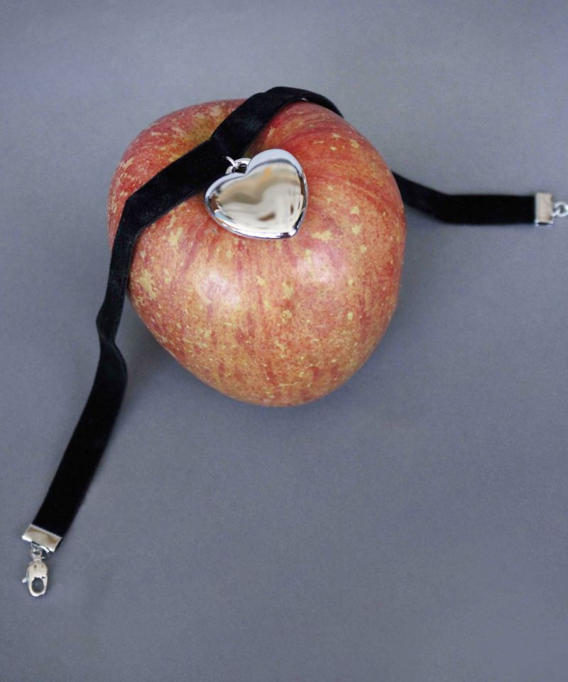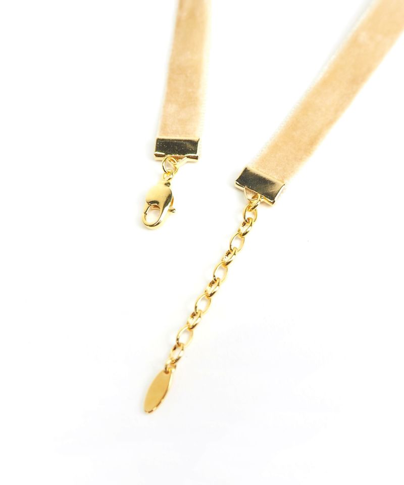 ベロアリボン素材に、メタルチャームをあしらったチョーカー。