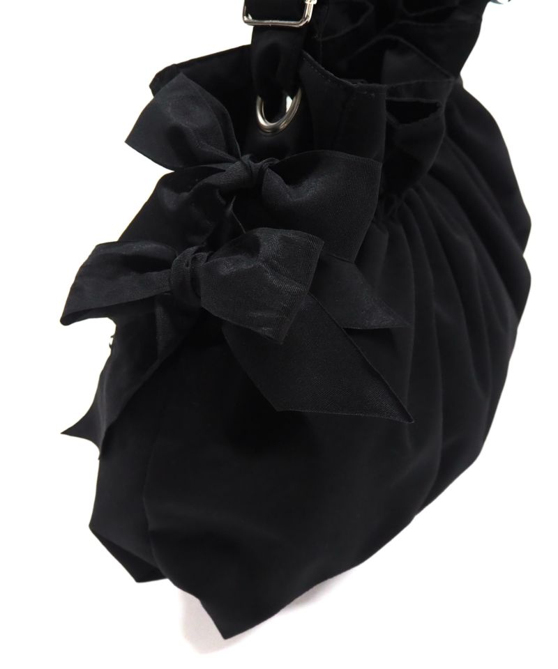 サイドにボリュームリボンをあしらった、キュートなデザインバッグ。