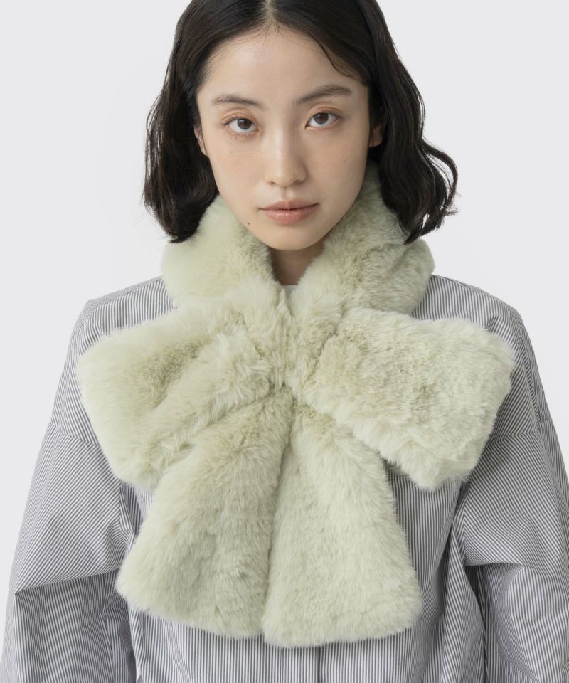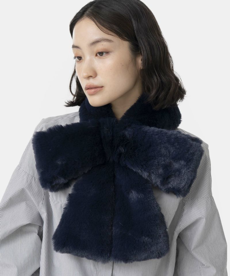 ノーカラーのコートやジャケットとの相性が抜群で、コーディネート全体の印象がアウターに左右されやすい時期でも大きなリボンがポイントになってファッションを楽しめるティペットです。