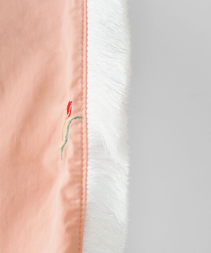 チューリップ柄になってバージョンアップ! 刺繍やフリンジ、アクセントになるカラーリングなど、かわいいを詰め込んだ布団カバー。 メインのカラーは淡い色なので、お部屋全体が優しい雰囲気に。 コットン素材で肌触りも◎ 背面の生地は刺繍なしのため、寝ているときも心地よいデザインです。 小花柄でピッチも広めのため、お部屋にもなじみます。 (サイズはシングルタイプ) 枕カバーはこちら ▶フリンジ枕カバー