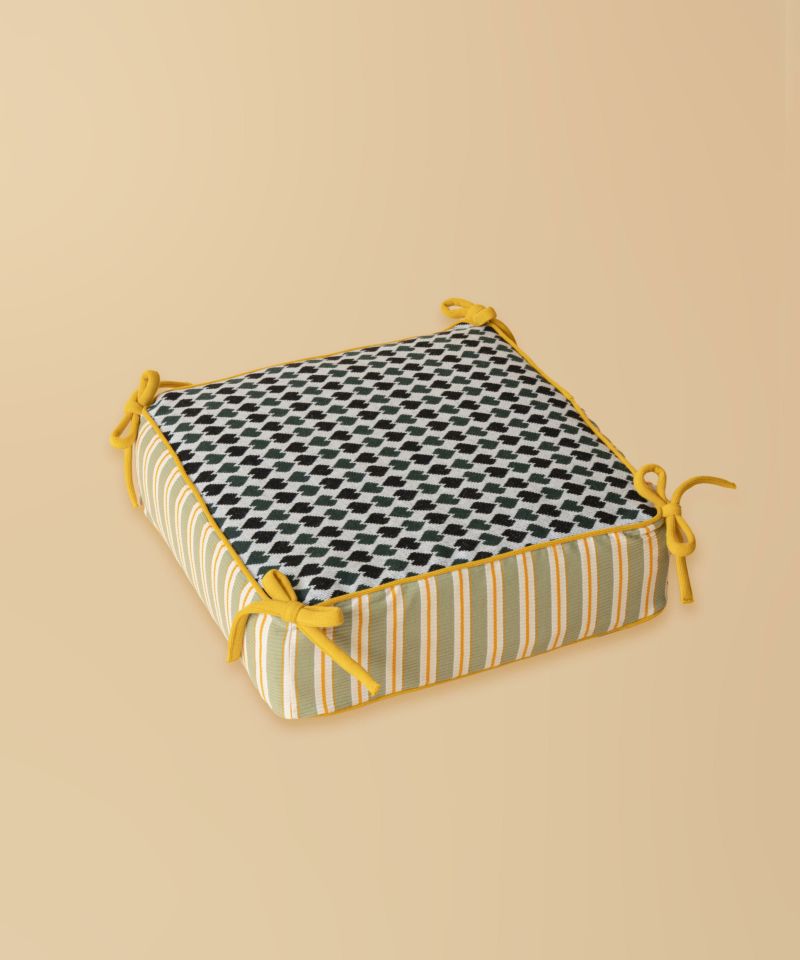 キャセリーニらしい柄が魅力的なクッション座布団。