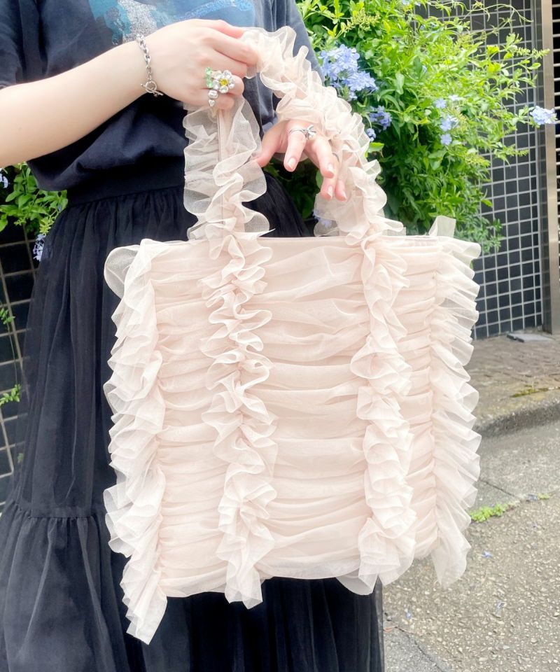 トレンドのチュール素材を使用したトートバッグ。