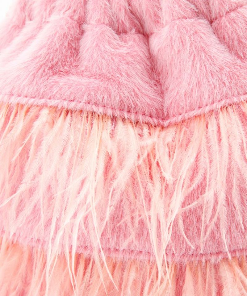 凸凹感のある立体的なフェザーが華やかな表情を見せる巾着バッグ。