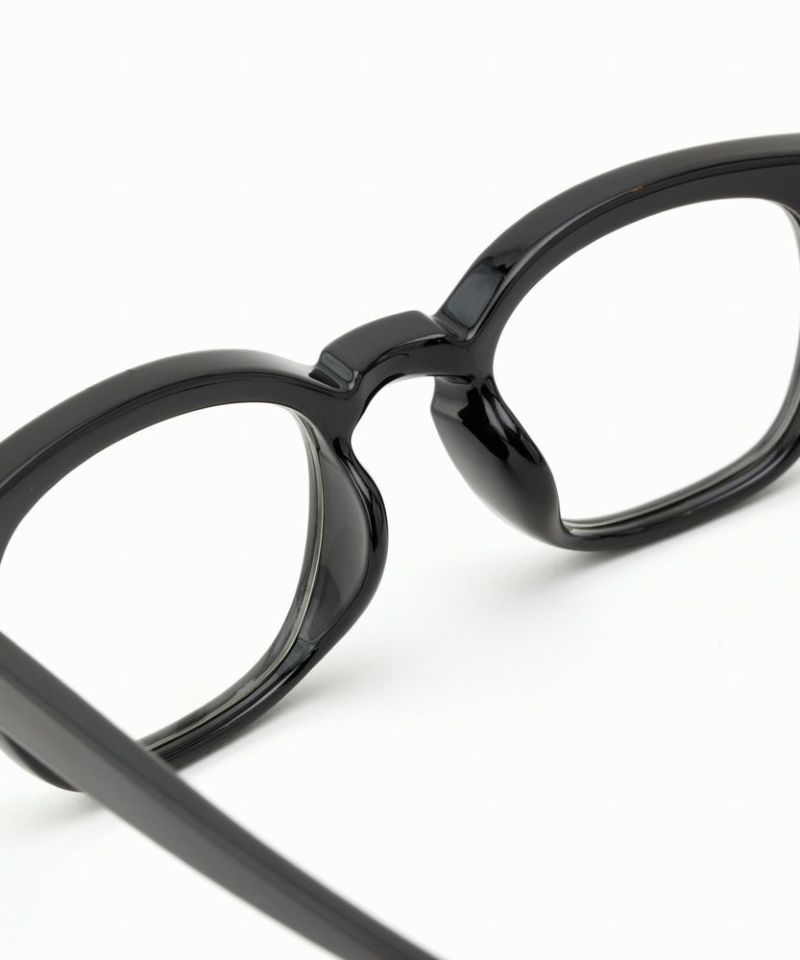 シンプルながらコーディネートのポイントになってくれるウェリントン型グラス。
