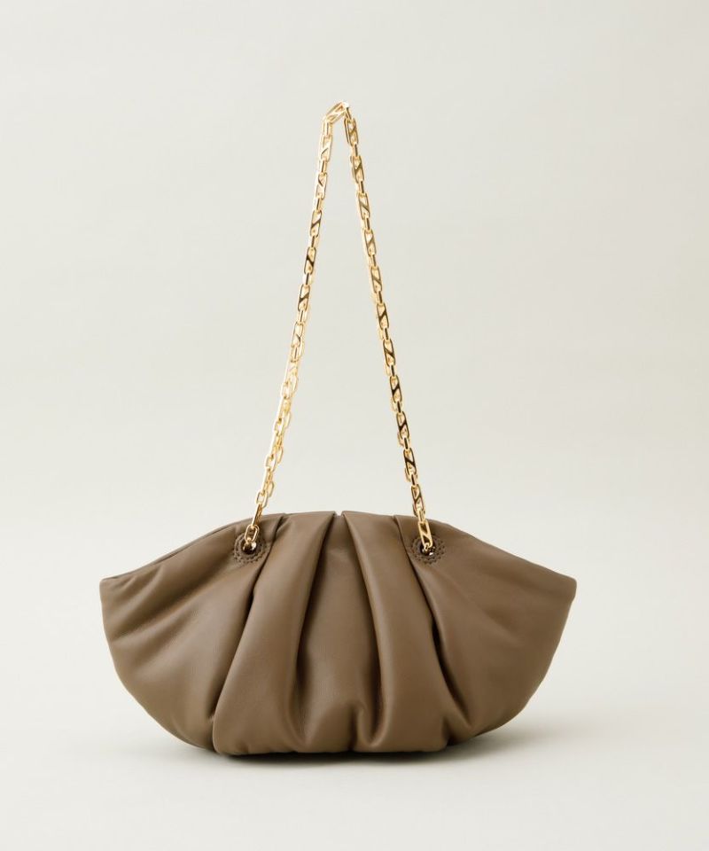 ぷっくりとした素材感と立体的なタックが女性らしさを演出するバッグ。