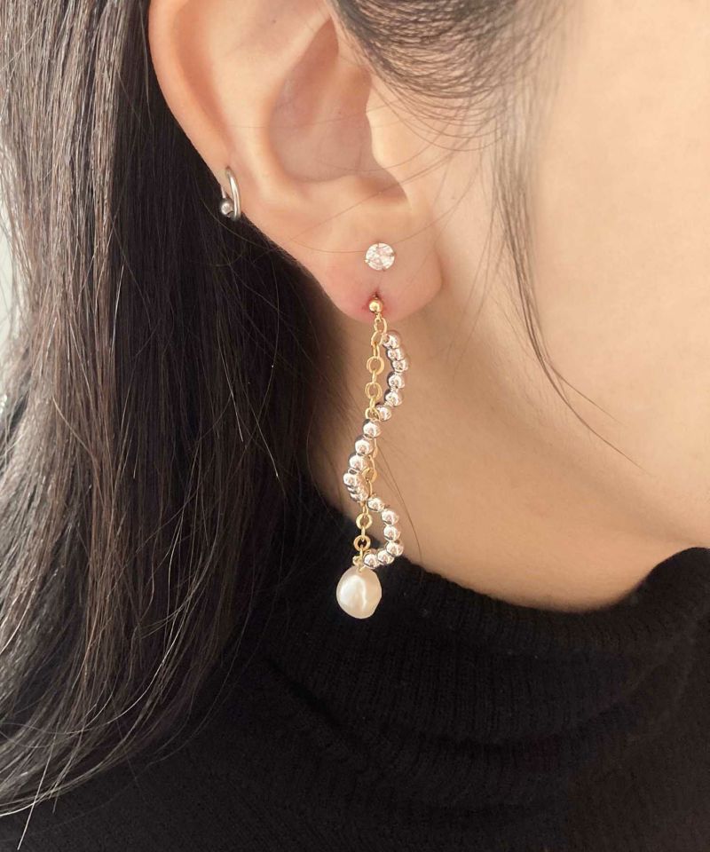 波打つビーズとチェーンの組み合わせが可愛いピアス。