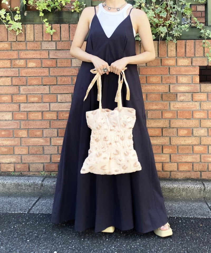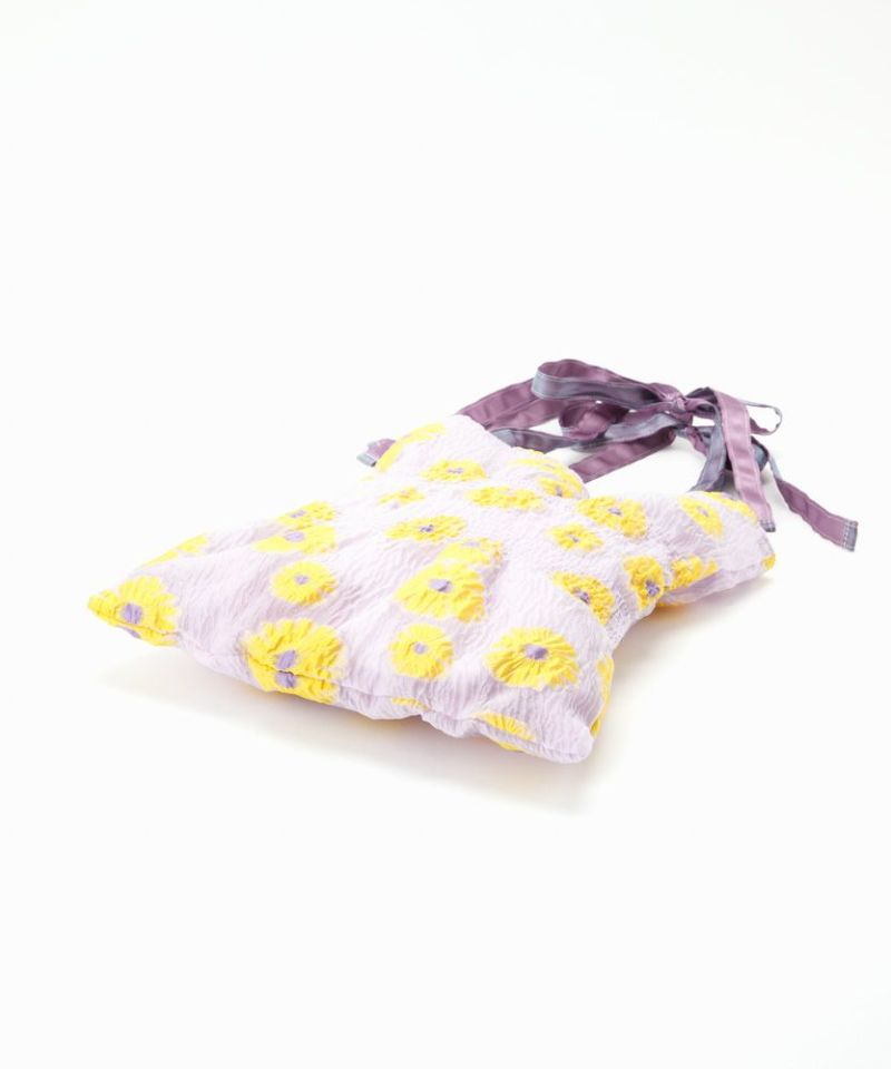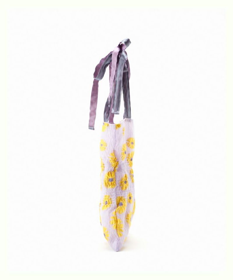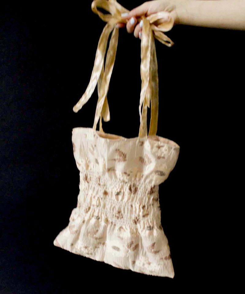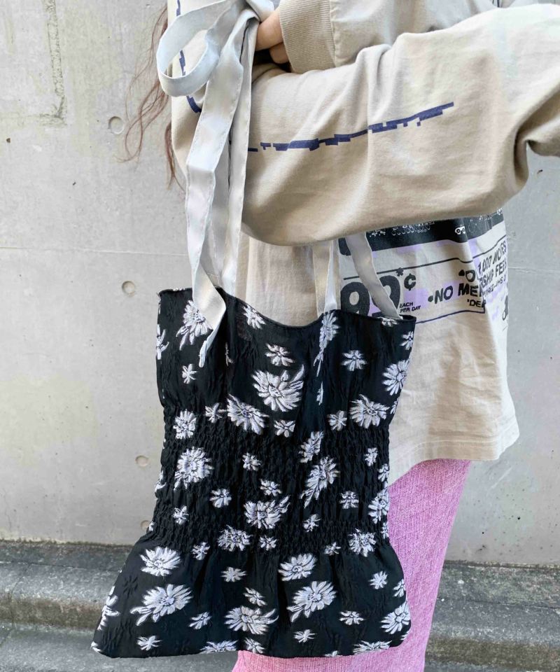 透け感のジャガード生地に立体的な模様が目を惹くトートバッグ。