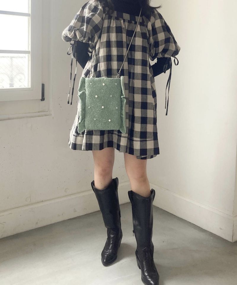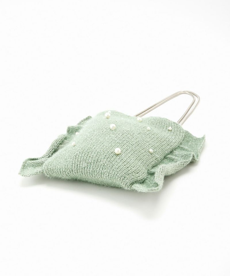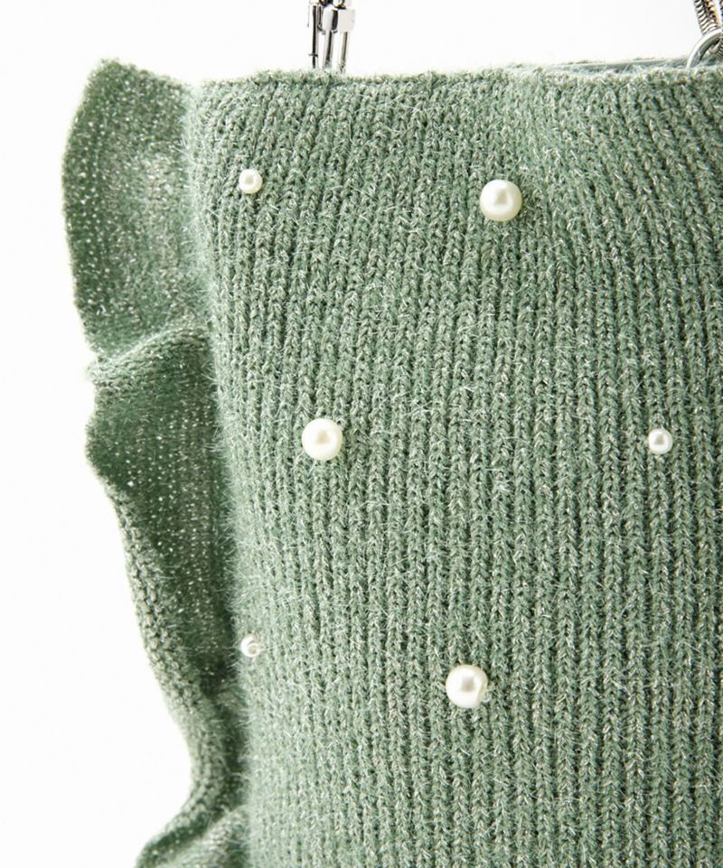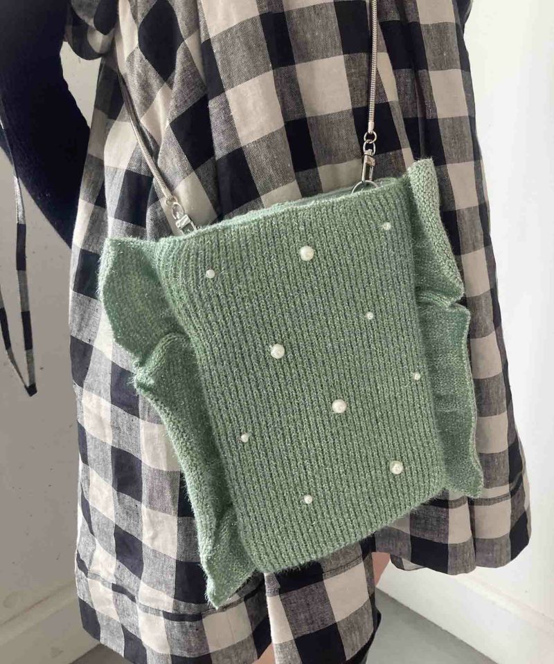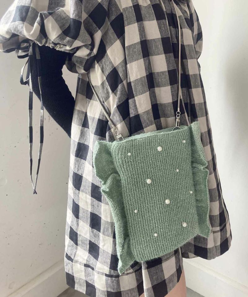 ニット×パール×フリルの遊び心組み合わせが遊び心のあるショルダーバッグ。