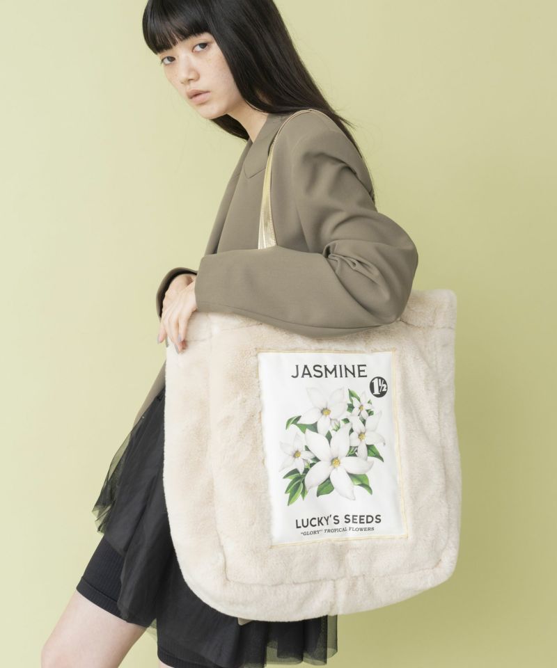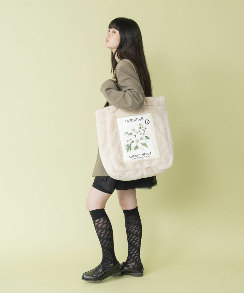 手触りの良いフェイクファーを使用した大容量のトートバッグ。