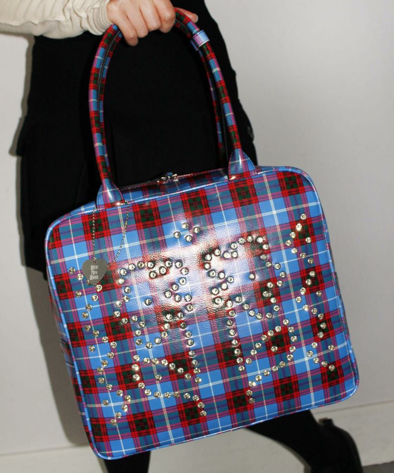 オモテ面に、カシメで留められたラインストーンで絵をかきました。