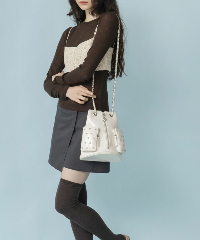 チェーンを引っ張ることで肩掛け&ハンドル持ちができる2WAY仕様です。