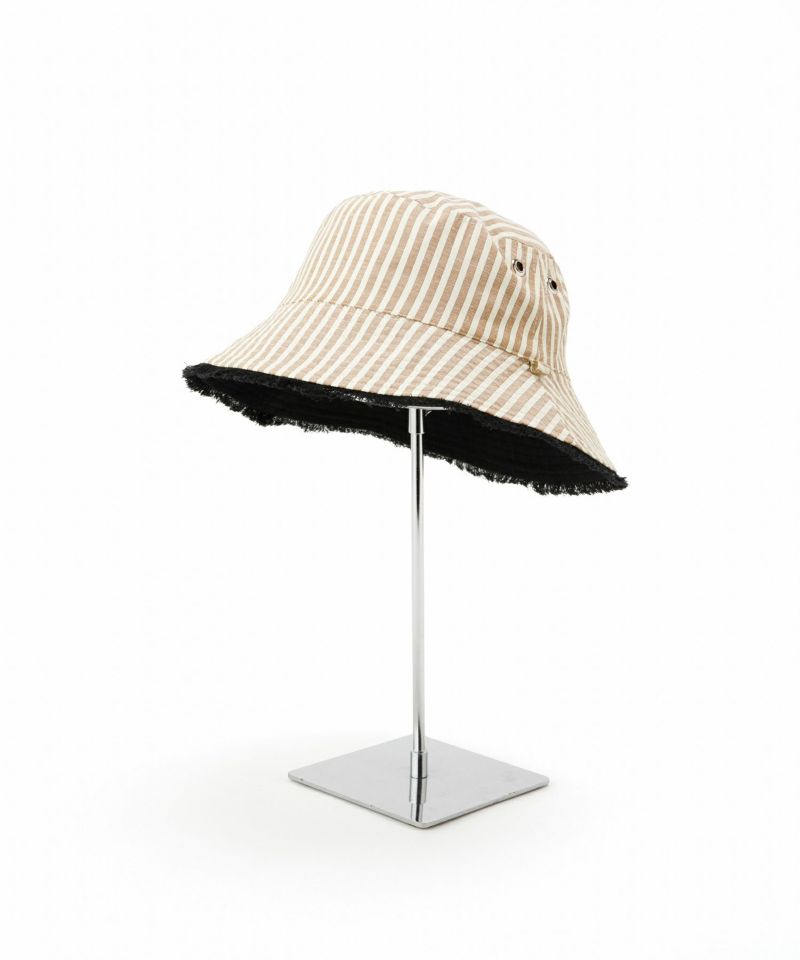 毎年人気のリバーシブルで楽しめるバケットハット。 裏側の柄生地がかぶった際にちらりと見えるところがポイントです。 使いやすいサイズ感もこだわり、畳んでバッグの中へ入れて持ち運びしやすい素材です。