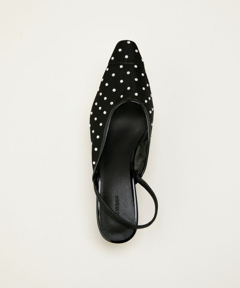 エレガントな雰囲気を演出するシアー素材のミュール。 光が当たるたびに煌めくビジューディテールをプラスし、華やかな一足に仕上げました。 きちんとした印象がありながらも気負わずに履きやすい一足です。 ・スタイリングを女性らしく仕上げてくれるミュール ・エレガントなムードを引き立てる華やかなシルエット ・ヌーディな抜け感が大人の余裕をプラス ・ゴム仕様のバックストラップで、スムーズな着脱 ・バランスの取れた4.5cmのヒール
