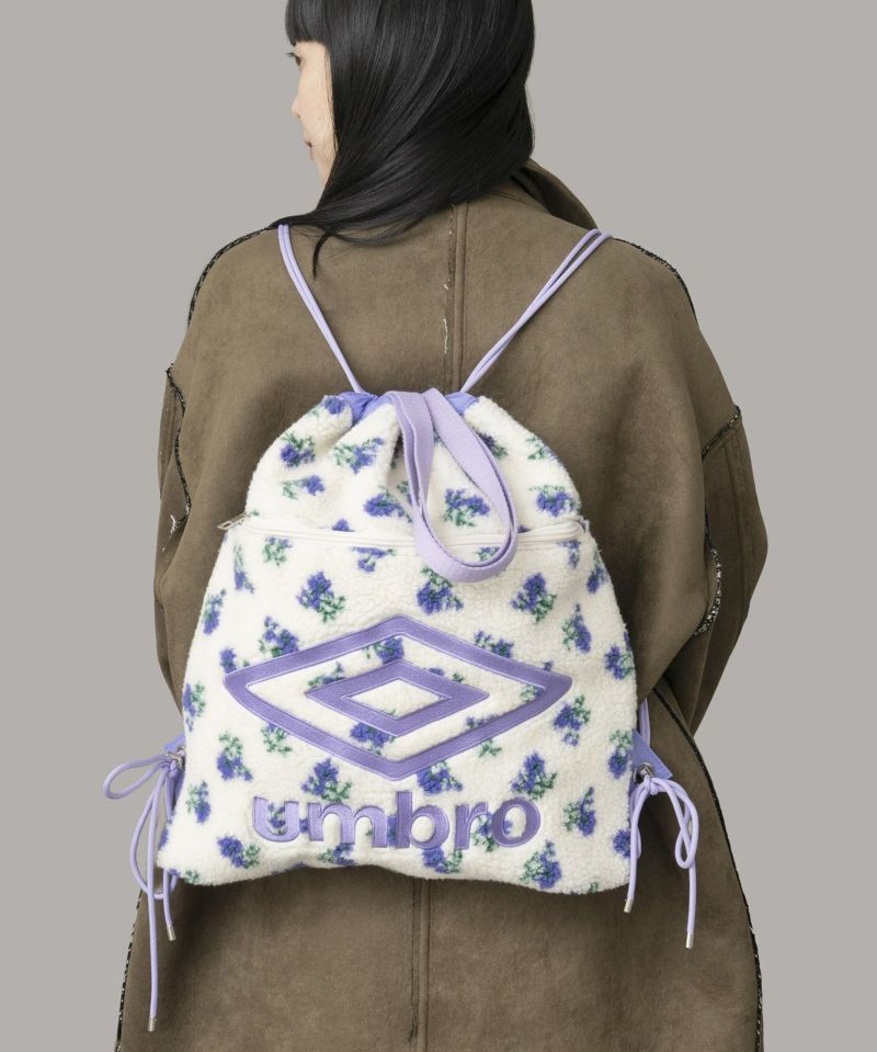 各カラーによって異なるテイストのボア生地と、主張しすぎないインパクト大なロゴ刺繍入りのナップサック。