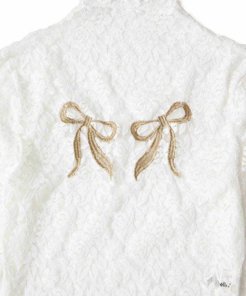 胸元のリボン刺繍が可愛いレディーライクな印象のレーストップス。 Casseliniの象徴でもある大ぶりなリボンと繊細なレースが女性らしさを引き出してくれます。 伸縮性のある生地で、体に優しくフィット。 短めの丈感なので、スタイルアップ効果も期待できます。 カラーはモードなブラックに、上品なホワイトの2色展開。 コーディネートにも取り入れやすく、今っぽくレイヤードスタイルもおすすめです◎