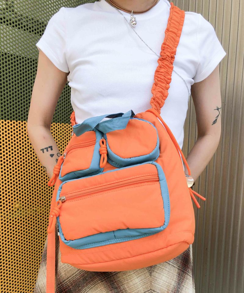 トレンドのギャザーをショルダーに備え、コーディネートのアクセントを担いながらマルチなサイズに変更できる機能的なデザインが魅力です。