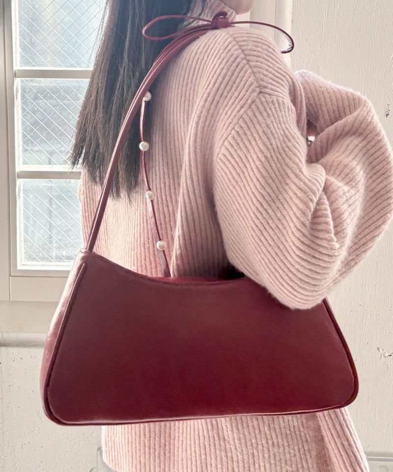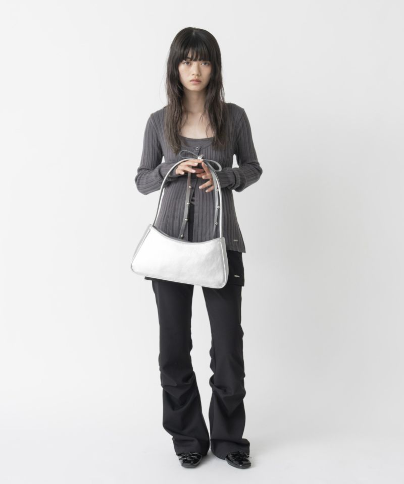 肩にちょこんと乗って見えるリボンモチーフは取り外しも可能なので、カジュアルからフォーマルまで幅広いコーディネートにマッチします。