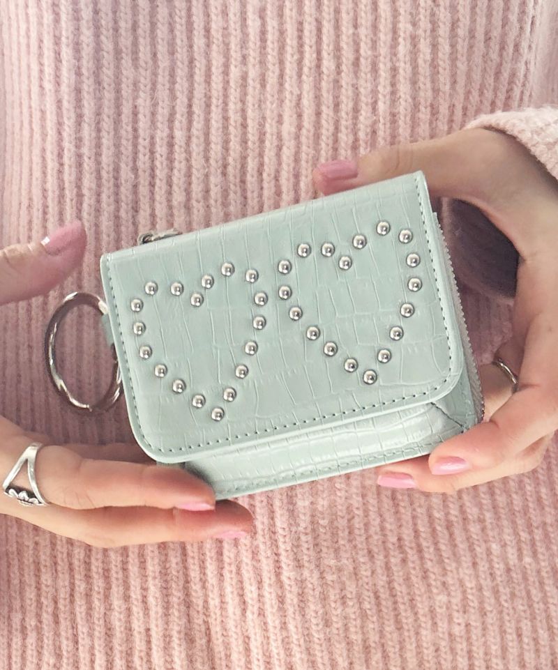 スタッズで描かれたハートがポイントのマルチカードケースです。
