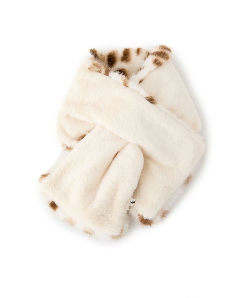 異なるフェイクファーを表裏に使用した、リバーシブル仕様のティペット。
