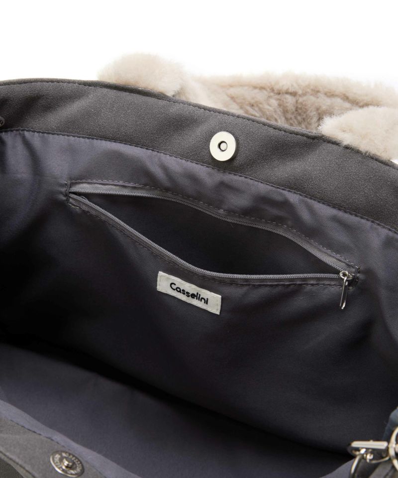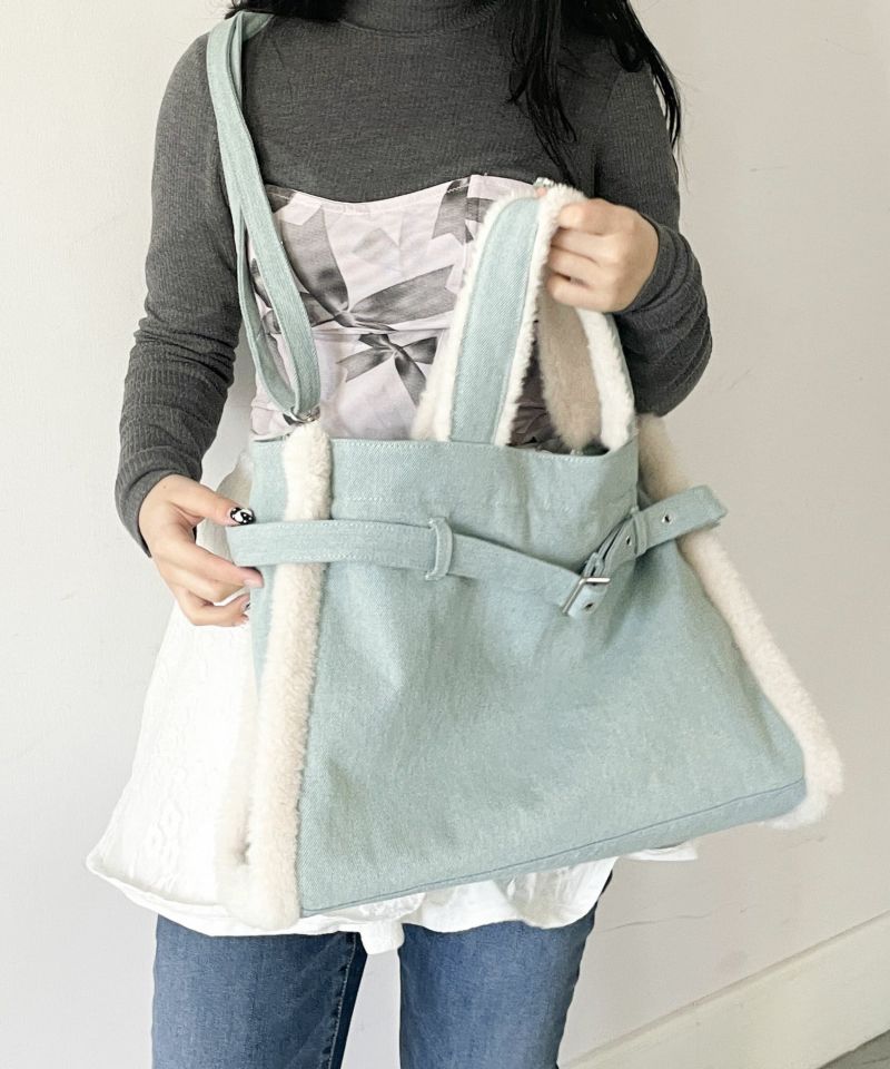 フェイクファー × ベルトディテールで、上品なトートバッグ。