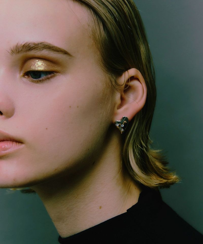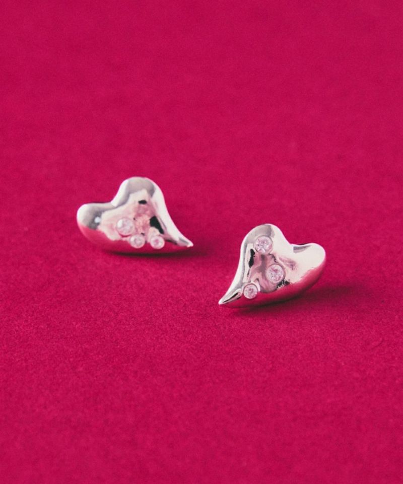 大小様々なジルコニアをランダムに配置したGardenシリーズのハートピアス。 左右アシンメトリーにあしらったストーンがポイントに。 小振りながら顔回りを印象的に引き立てます。