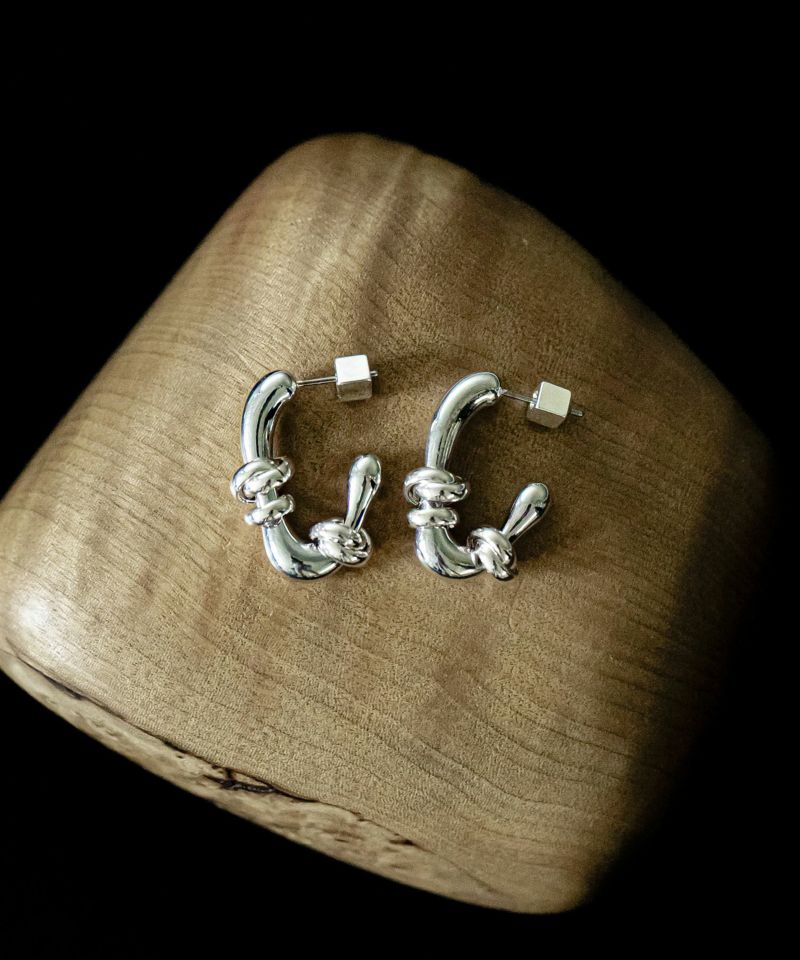 存在感のある形状とボリュームの Flow coilシリーズのピアス。