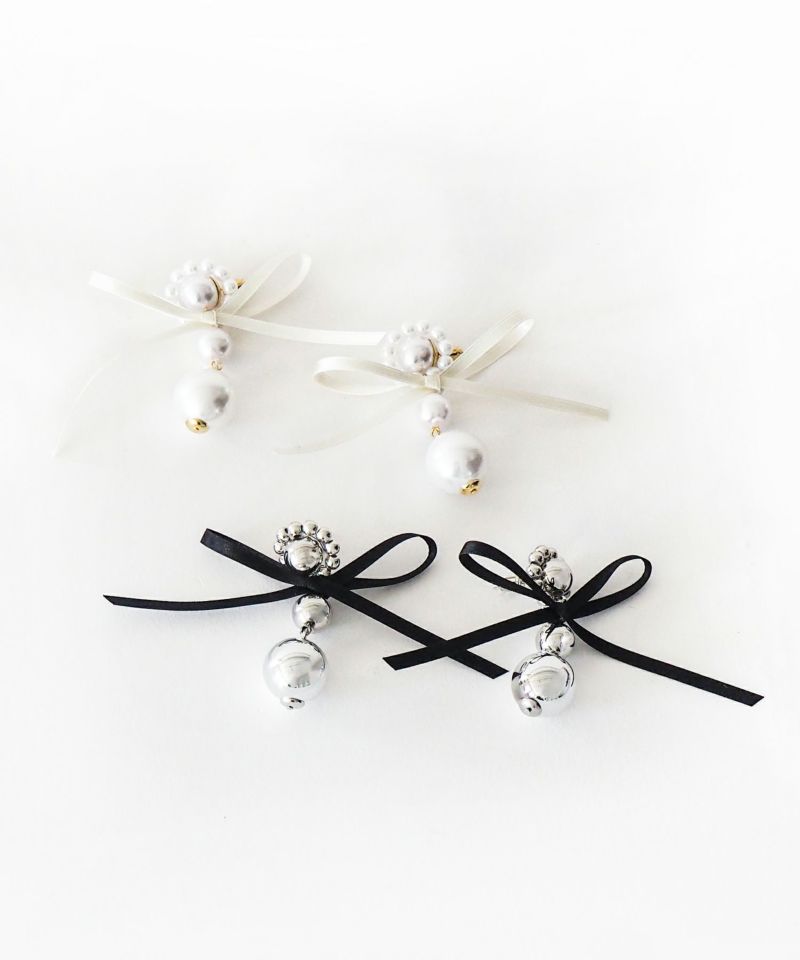 可愛いを詰め込んだパール×リボンピアス。 上品な輝きのパールが耳元を華やかにしてくれます。 オケージョンシーンはもちろん、あえてTシャツなどカジュアルコーデに取り入れるのも◎