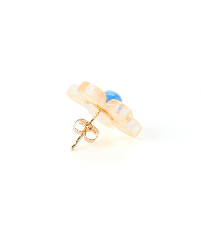 ぷっくり感と透け感がキュートなクリア素材のフラワーピアス。 ビビッドなセンターカラーがアクセントになって、耳元をパッと明るく彩ります。 軽量でつけ心地もよく、デイリーからフェスやイベントまで幅広く使える万能アイテム。 パステル×ビビッドの配色がポイントです。