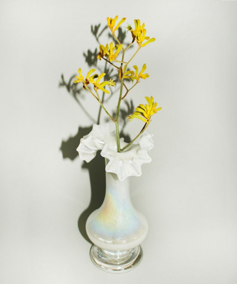 パステルカラーとオブジェのようなシルエットが特徴的なフラワーベース。