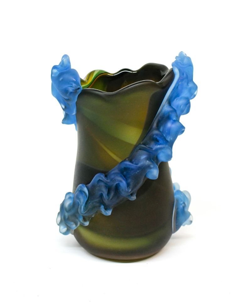 ユニークなシルエットとカラーがポイントのガラスフラワーベース。