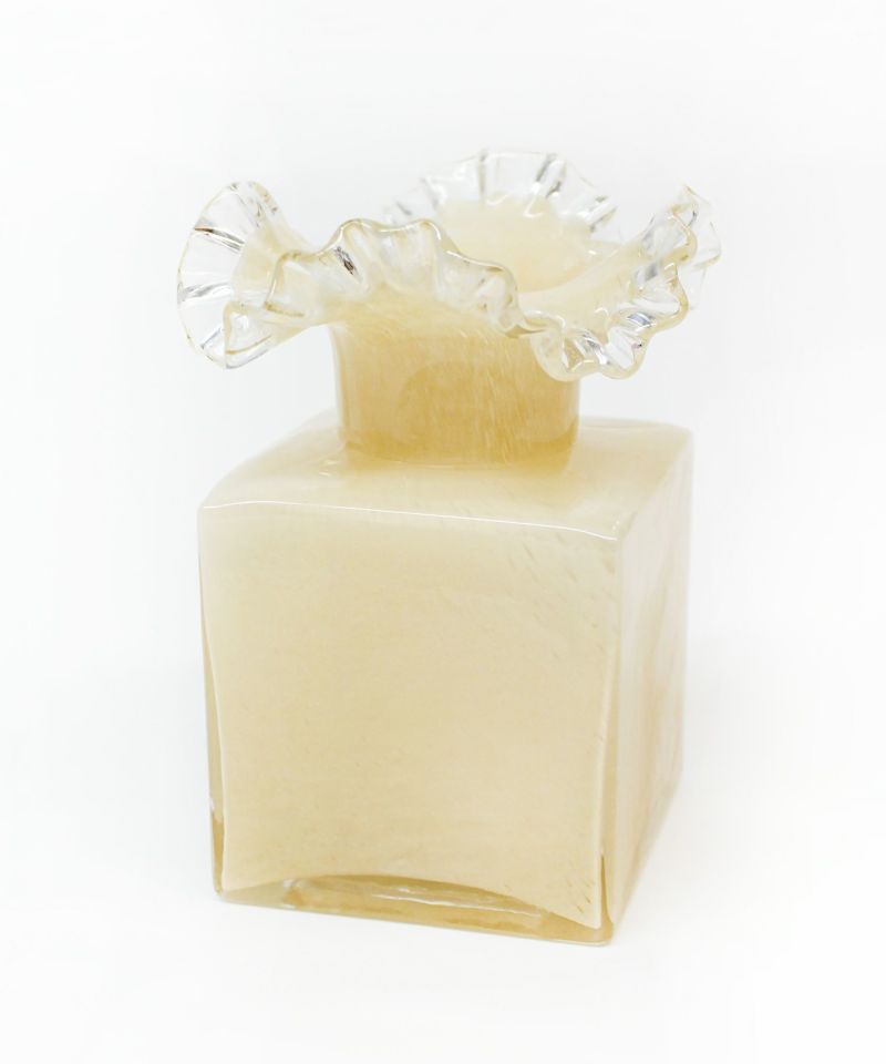 四角いフォルムが可愛らしくレトロな雰囲気を漂わせるガラスの花瓶。
