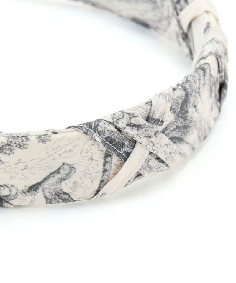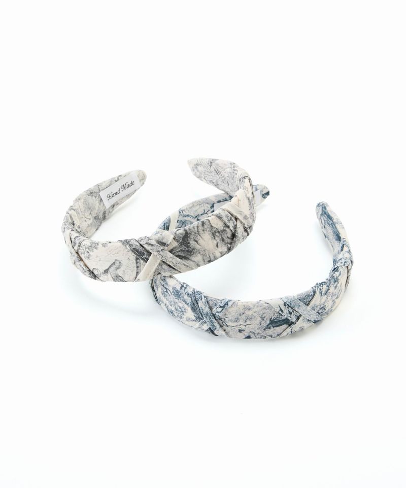繊細なアンティーク柄が上品な印象を与えるカチューシャ。 柔らかな色味とツイストデザインが、クラシカルで大人可愛い雰囲気を演出します。 普段使いはもちろん、特別な日のアクセントにもおすすめのアイテムです。
