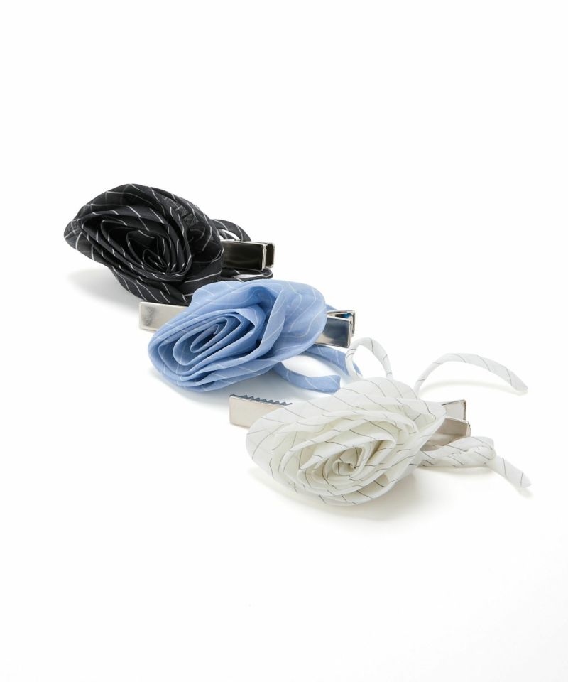 繊細なストライプ柄が上品さを引き立てるローズモチーフのヘアクリップ。 透け感のある軽やかな素材が、ふんわりと華やかな印象を演出します。 デイリーから特別な日まで、幅広いシーンで活躍するアクセサリーです。