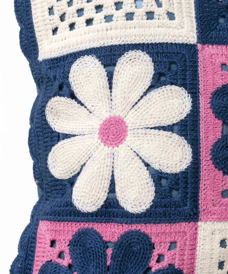 トレンドのクロシェ編みのクッションカバー。 ハート柄は、ドット絵のように、お花は、チェックと織り交ぜたデザインがポイント。 カラフルな色づかいがお部屋に春夏らしさをプラスしてくれます! お揃いのマルチカバーもあるので、柄違いでお部屋に置くのもおすすめ。 裏は無地布。ファスナー仕様です。 ▶クロシェマルチカバー