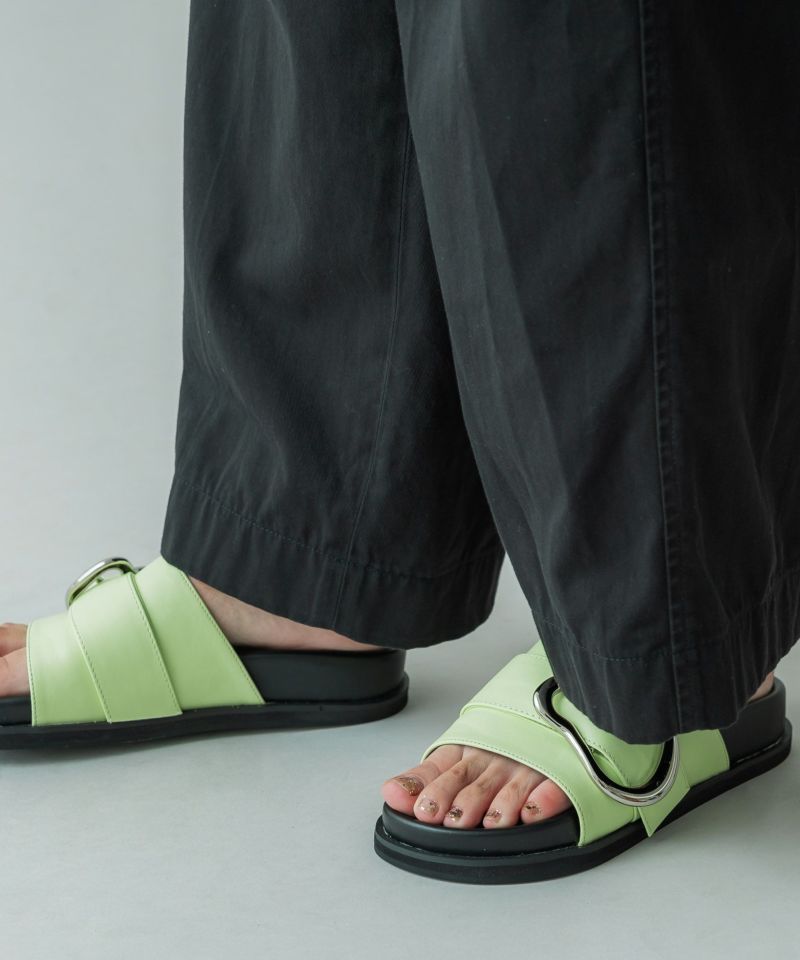 洋梨(POIRE)を模したフロントのバックルはLE VERNISオリジナル。 シンプルながらもバックルの存在感が足元に彩りを与え、シーズンムードを高めてくれます。