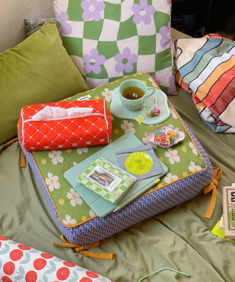 キャセリーニらしい柄が魅力的なクッション座布団。