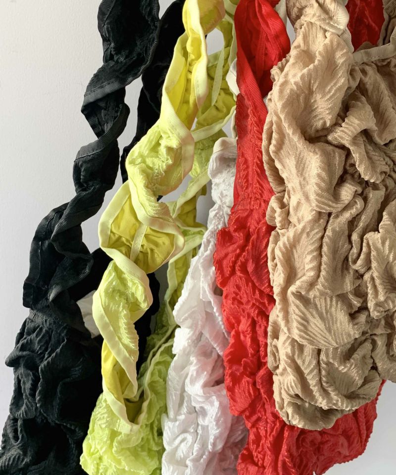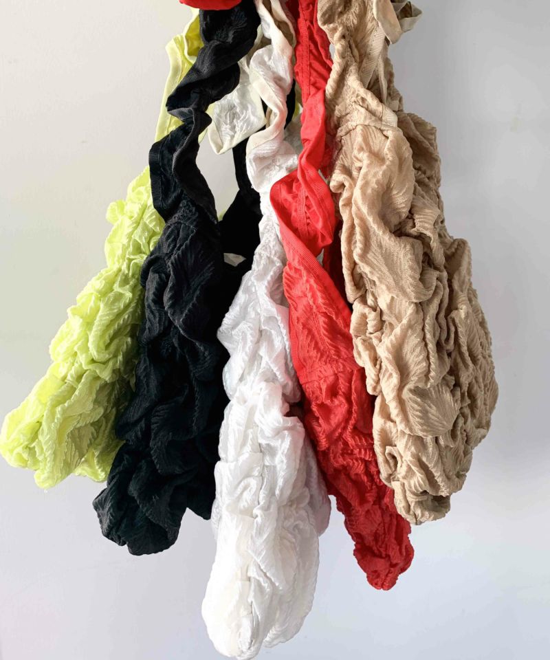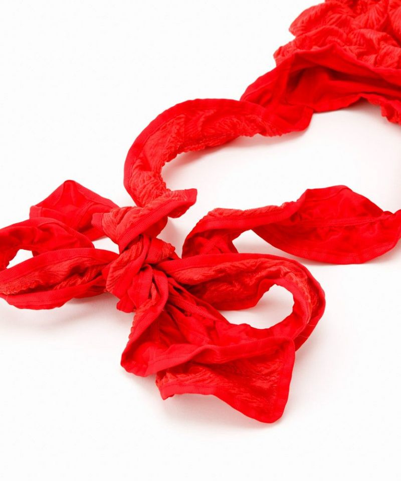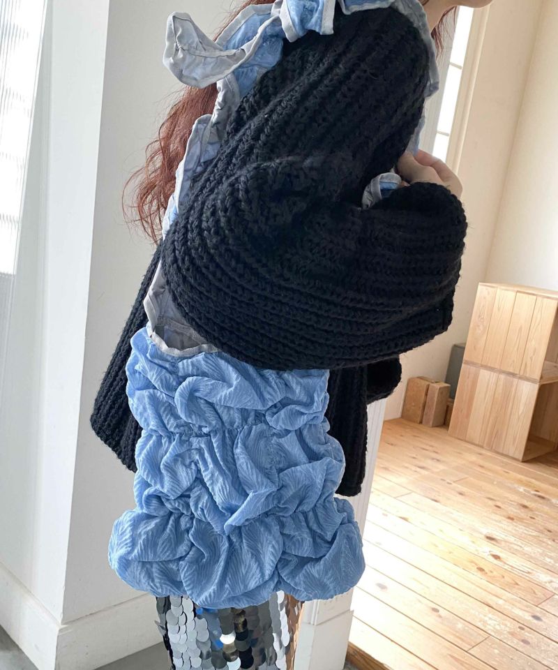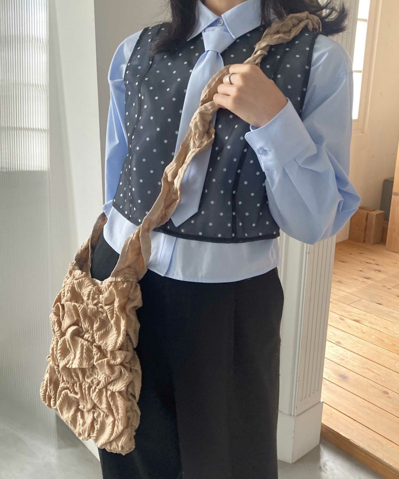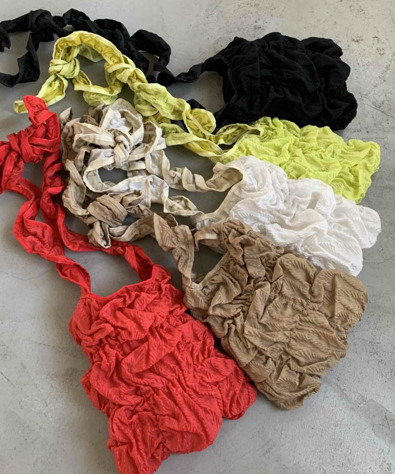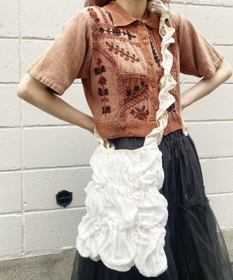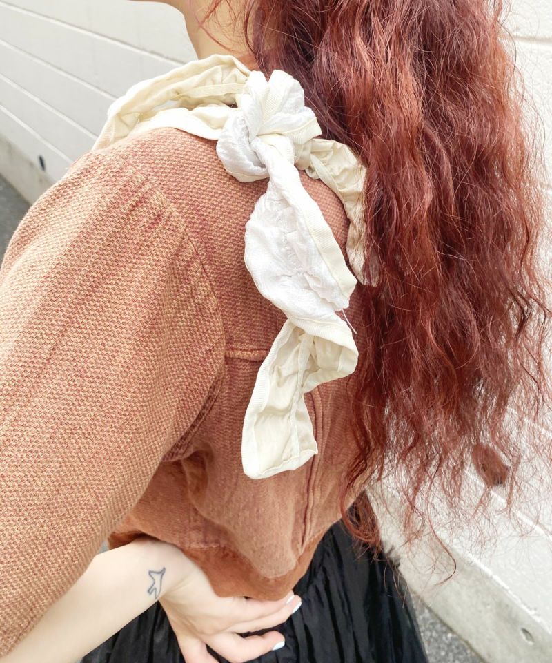 ショルダー上部を結ぶタイプなので、お好きな長さに調節可能です。