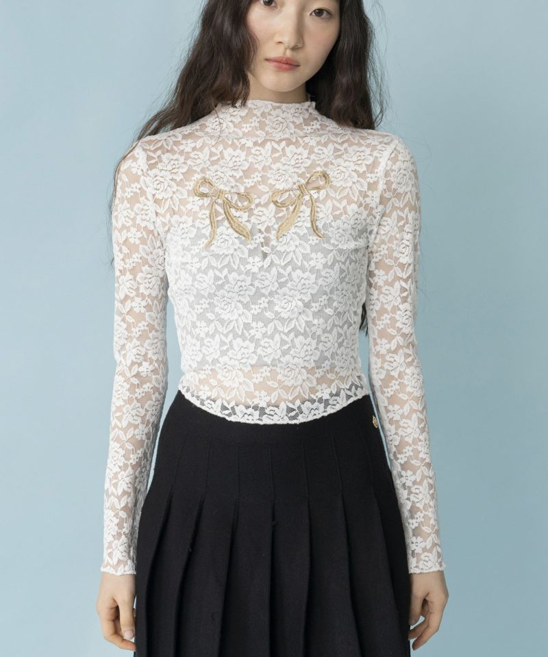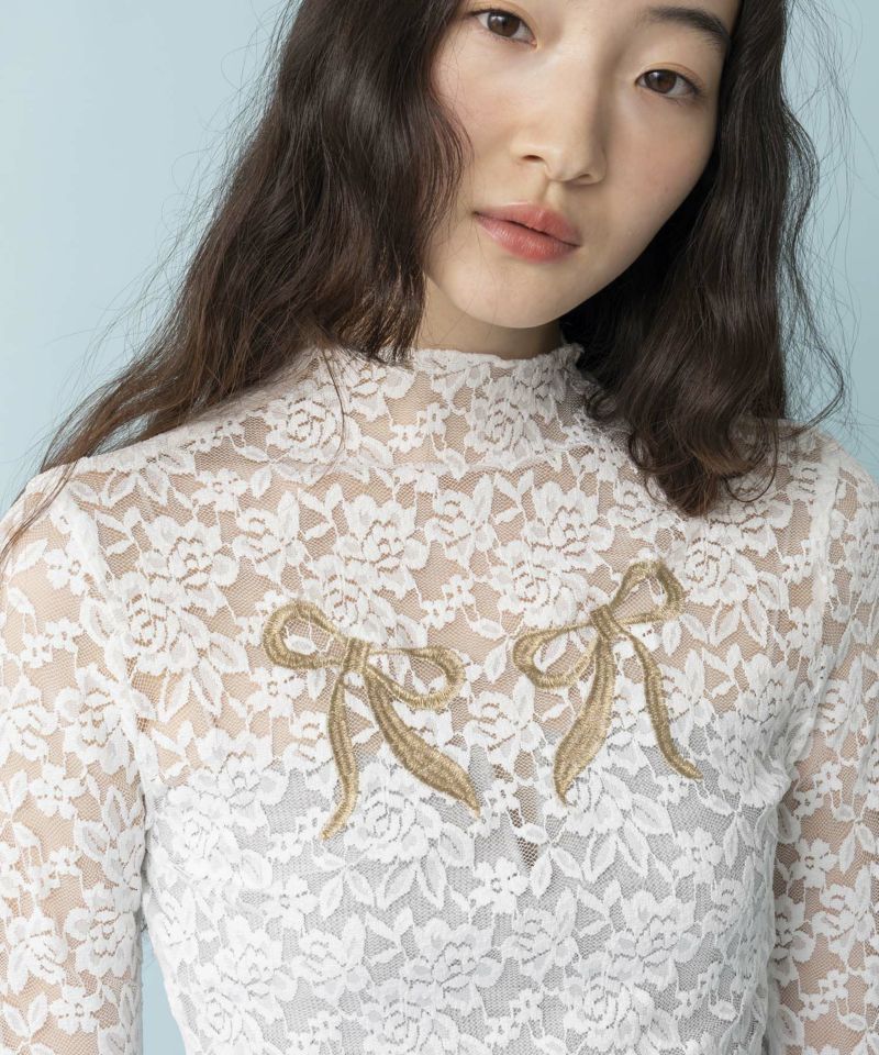 胸元のリボン刺繍が可愛いレディーライクな印象のレーストップス。 Casseliniの象徴でもある大ぶりなリボンと繊細なレースが女性らしさを引き出してくれます。 伸縮性のある生地で、体に優しくフィット。 短めの丈感なので、スタイルアップ効果も期待できます。 カラーはモードなブラックに、上品なホワイトの2色展開。 コーディネートにも取り入れやすく、今っぽくレイヤードスタイルもおすすめです◎
