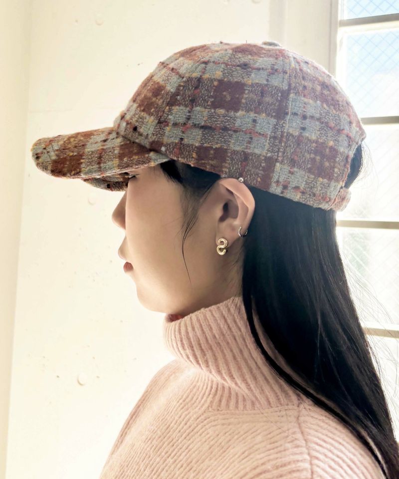 ブラックには起毛感のある素材を使用しており、秋冬らしいカラーが組み合わさったチェック柄はコーディネートの主役となる存在感です。 単調になりがちなアルファベットロゴキャップですが、お花をあしらいキャセリー二らしい唯一無二のアイテムに仕上げました。 ※チェック柄の出方には個体差が生じます。