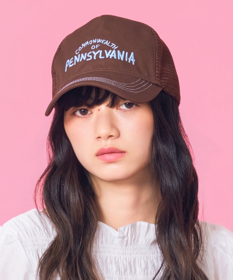 レトロな雰囲気の配色&刺繍がポイントのメッシュキャップです。