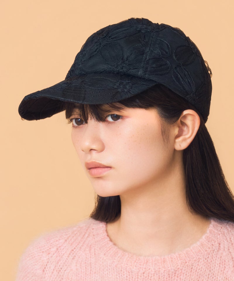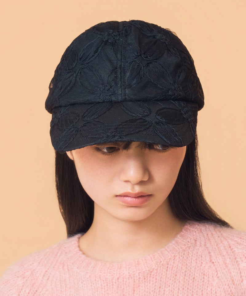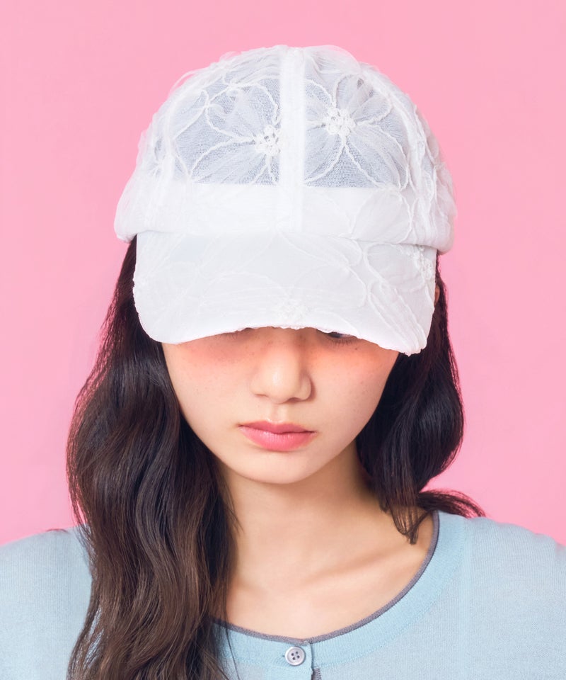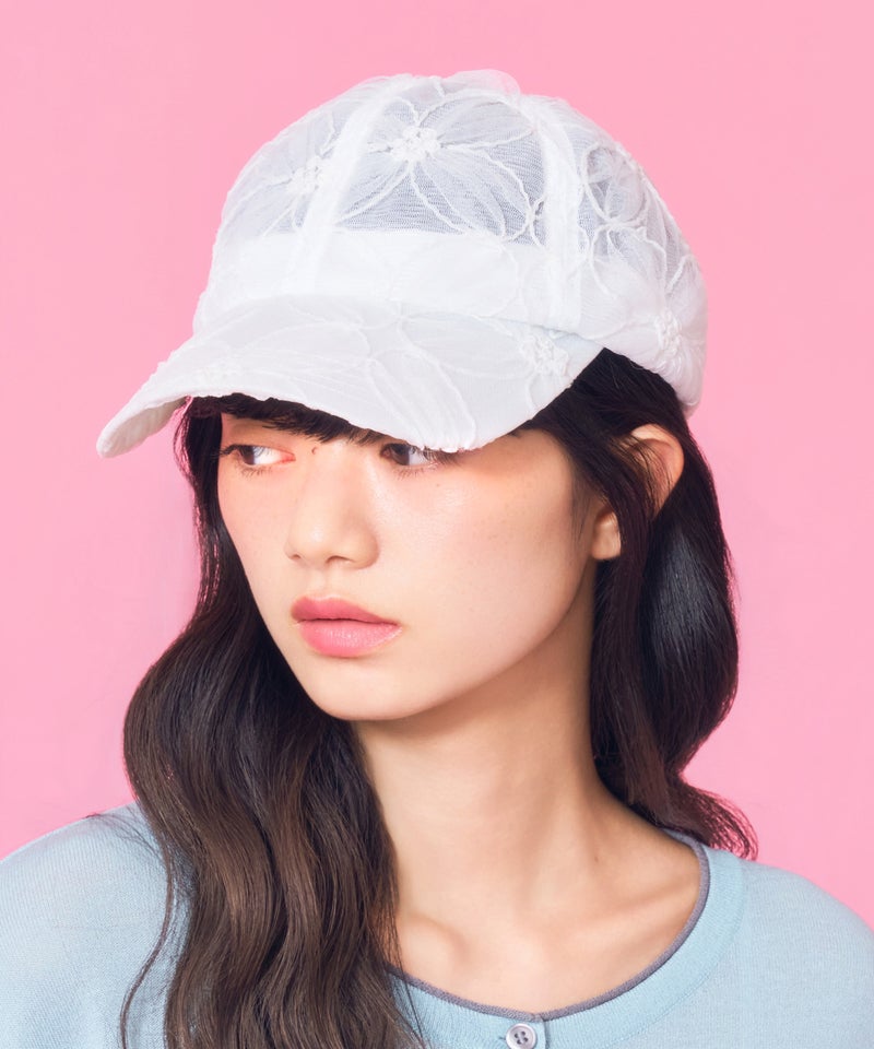 デザイン性と通気性を兼ね備えた、全面レース素材のキャップ。