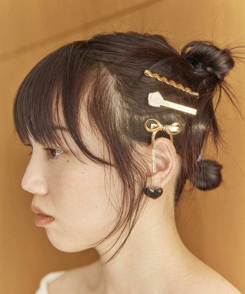 なみなみモチーフがポイントのヘアピンセット。 ツヤ感のあるため、カジュアルにもキレイめにも合わせやすい〇 結んだ髪にもおろした髪にもさっと付けるだけで、オシャレ度がアップします!