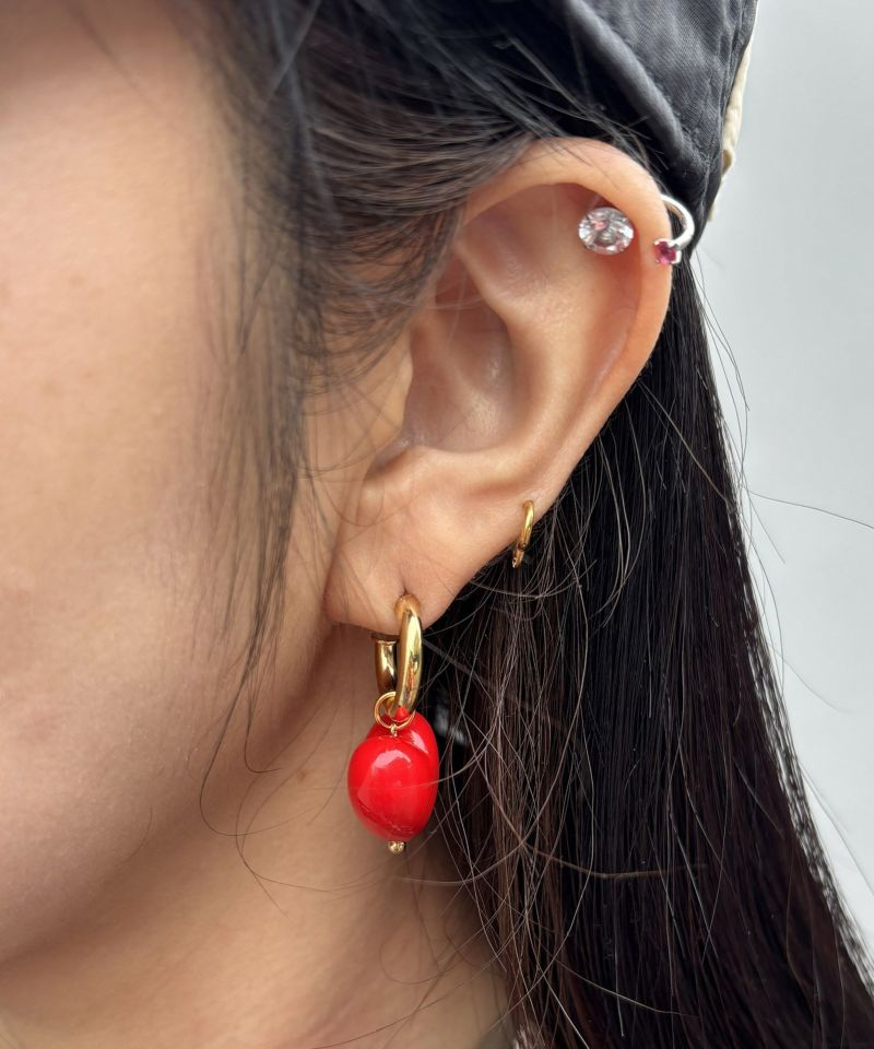ぷっくりとしたハートモチーフが可愛いピアス。 シンプルなデザインで取り入れやすく、さっと付けるだけで顔周りが華やかな印象に。 レッドとブラックの2色をご用意。