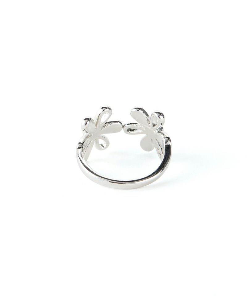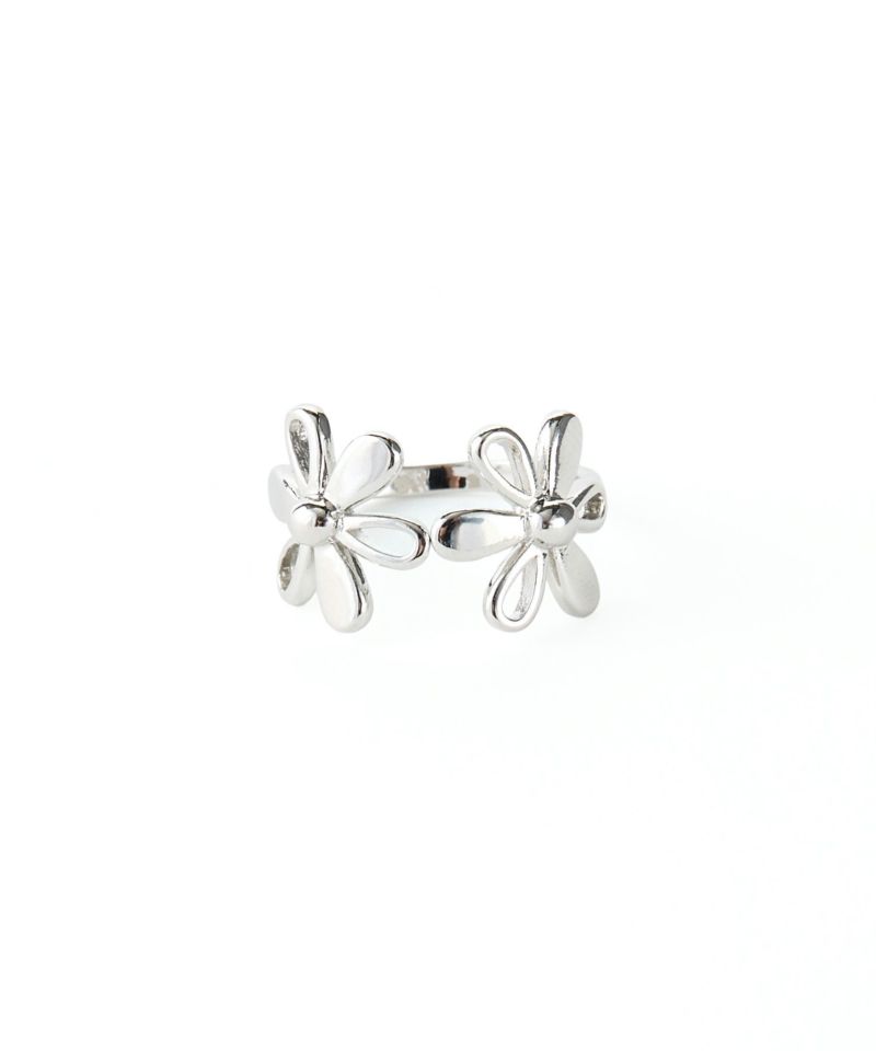 2つの花をあしらったリング。 連なる花を両サイドに置くことで横から見て可愛いアイテムです。 華奢なサイズ感で、他のリングとの相性も良く使いやすい。 サイズ...15号相当