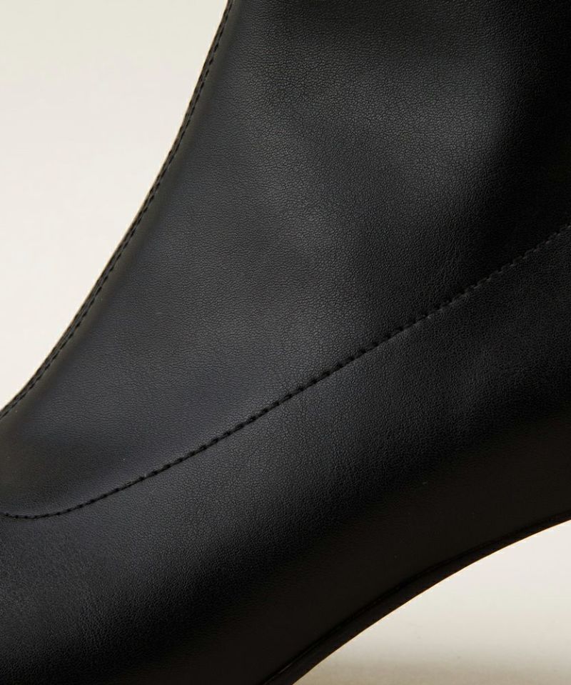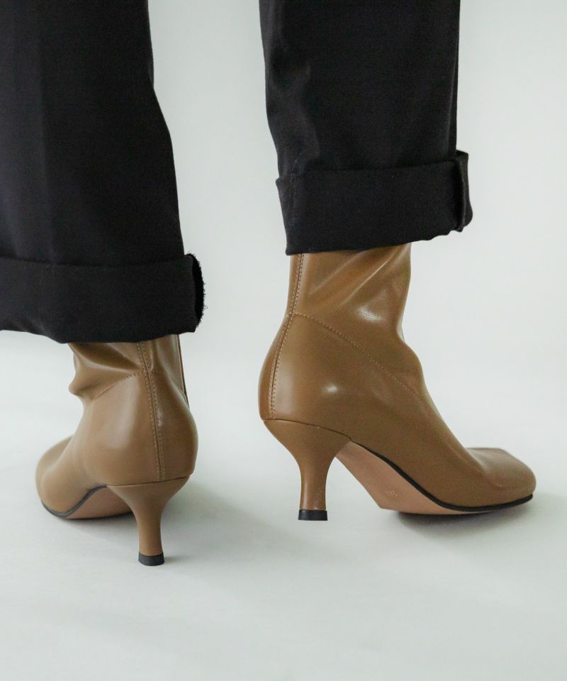 レザー見えするストレッチ性の高い素材を使用しているため、6cmヒールとやや高めでも足にフィットする履き心地を実現しました。