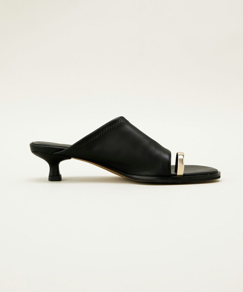 トゥリングのディテールが目を引くミュールサンダル。 アクセサリーをつけているかのように見えるデザインは、カジュアルになりがちな夏の足元を華やかに演出します。 アッパーには足にフィットするストレッチの効いた柔らかい合成皮革を使用し、裏側には耐久性のある人工皮革を貼り合わせることで、足馴染みの良さも叶えました。 ・すっと履けるミュールタイプのサンダル ・トレンドライクな洗練されたシルエット ・華奢見えするトゥリングのデザインががポイント ・モードからきれいめなスタイルまで幅広く活躍 ・しっかりホールドする深めの履き口 ・4cmの安定感のあるキトゥンヒール