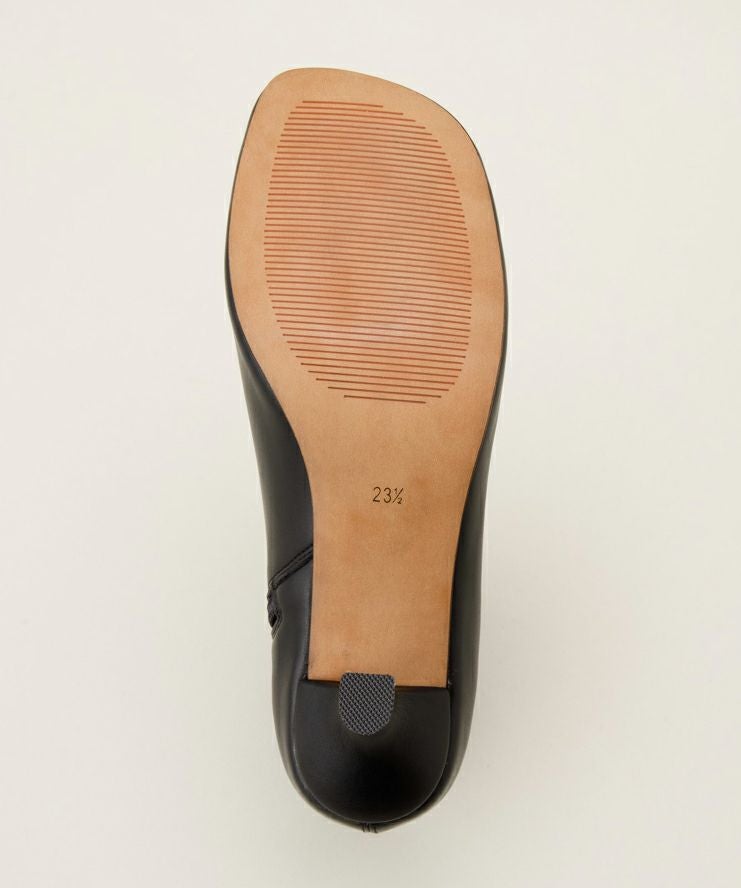 レザー見えするストレッチ性の高い素材を使用しているため、6cmヒールとやや高めでも足にフィットする履き心地を実現しました。