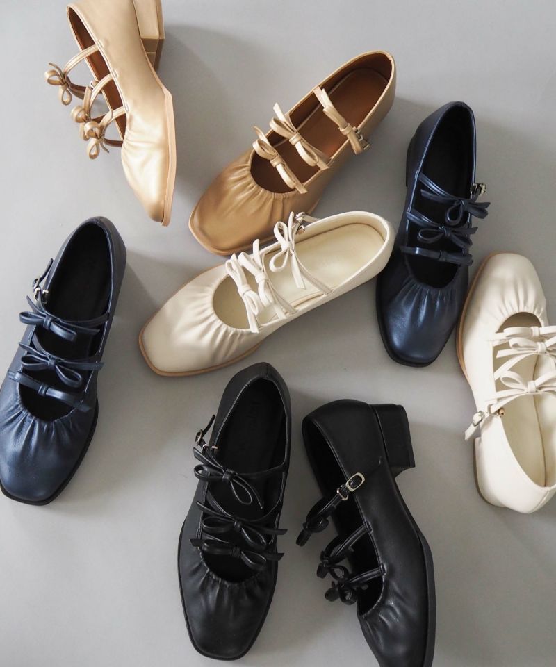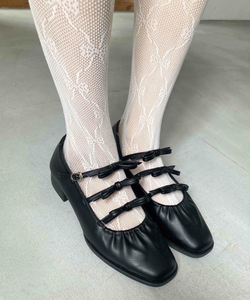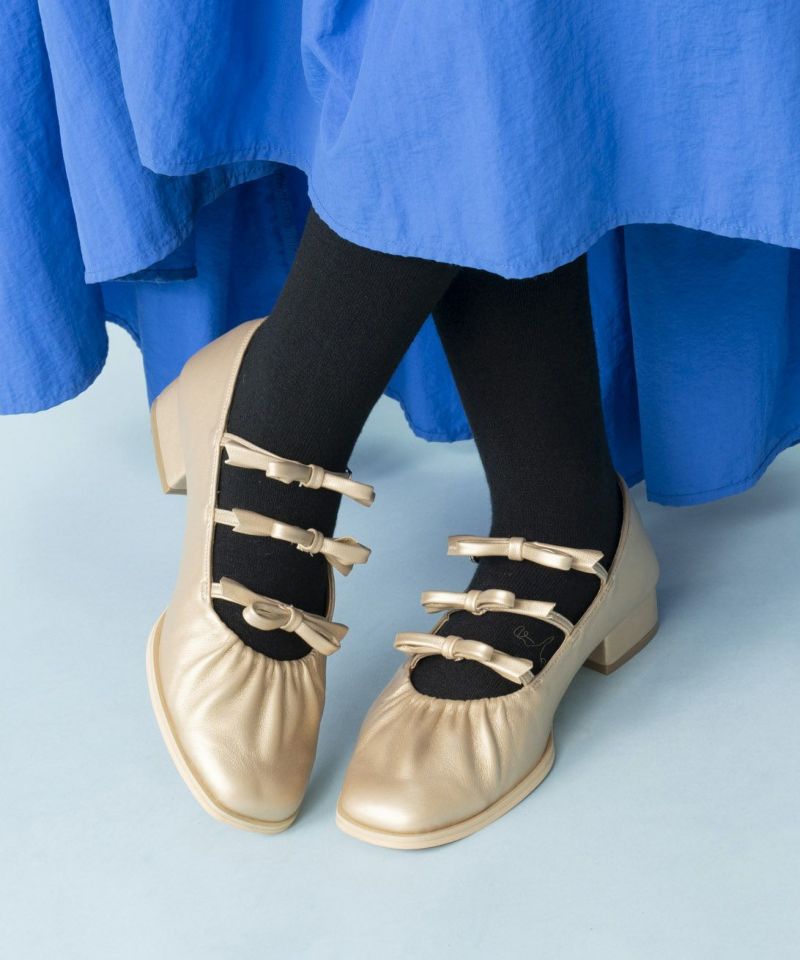 3つ並んだリボンは足元をスタイリッシュに見せ、コーディネートのポイントに。