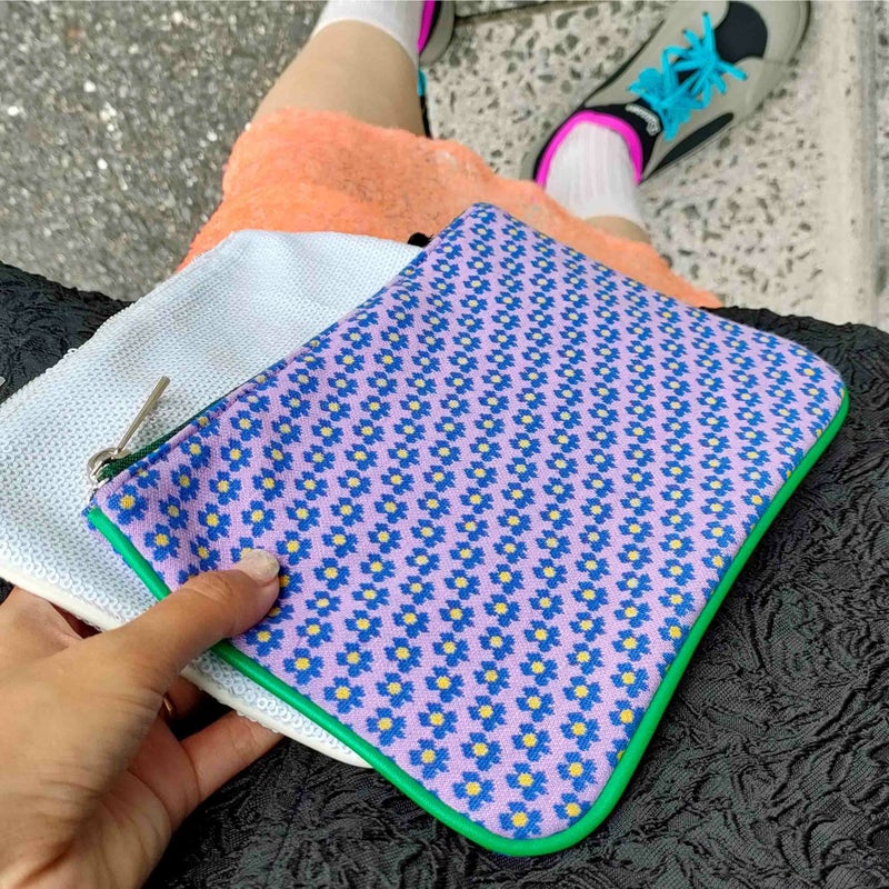 キャセリーニらしい可愛いプリントの素材を使ったポーチ。