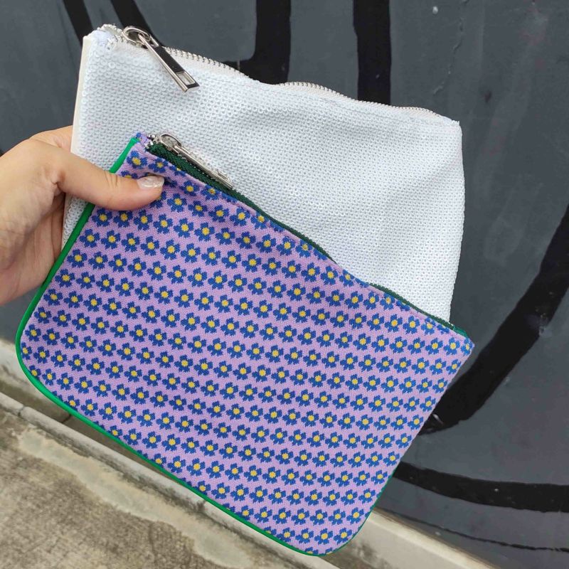 キャセリーニらしい可愛いプリントの素材を使ったポーチ。